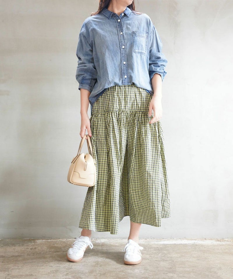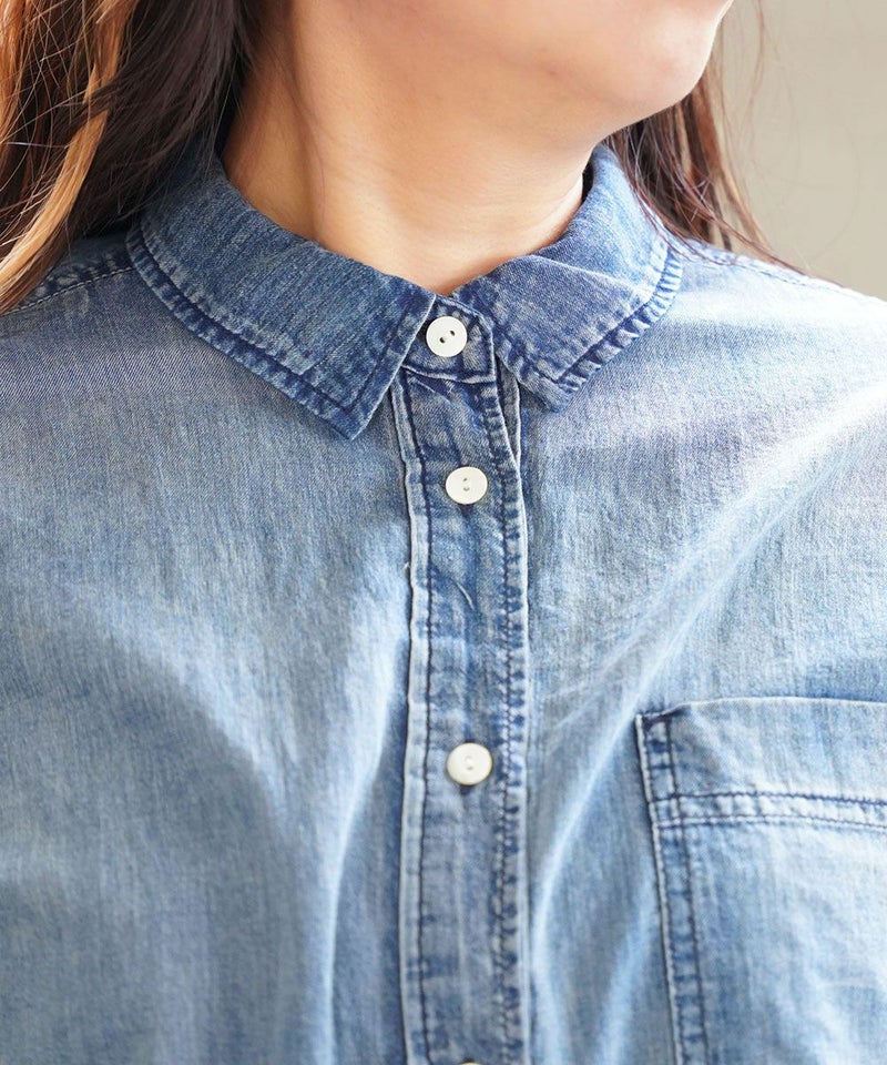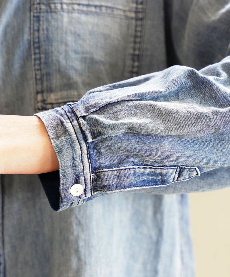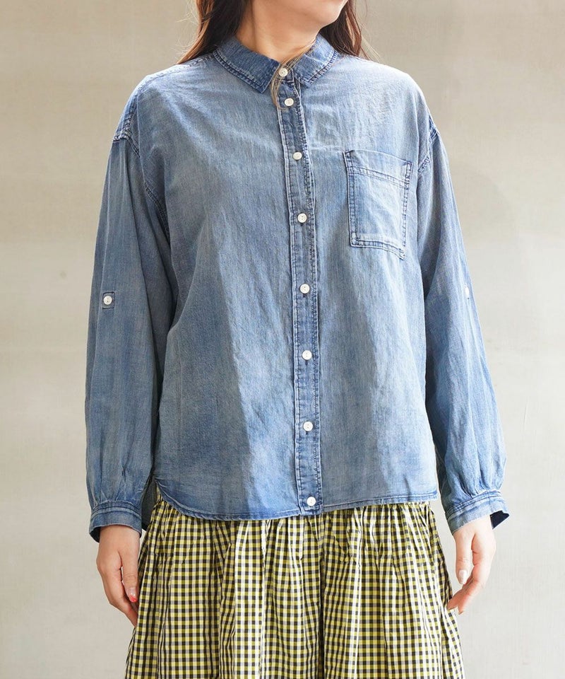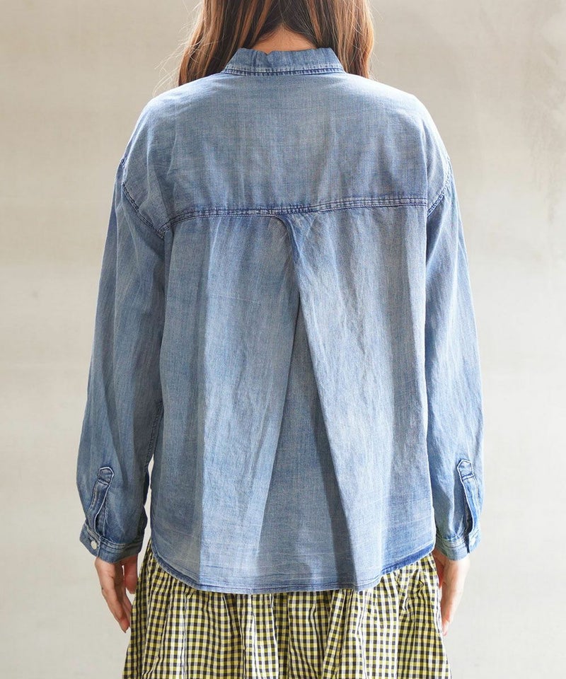 デニム風 深タックシャツ