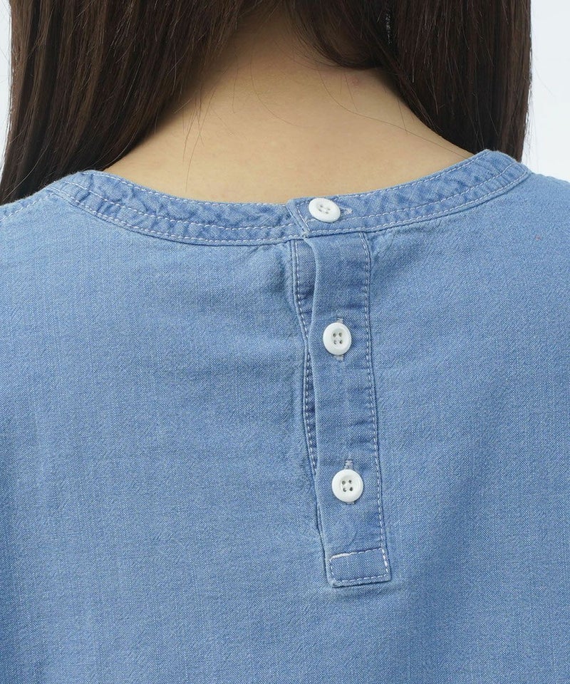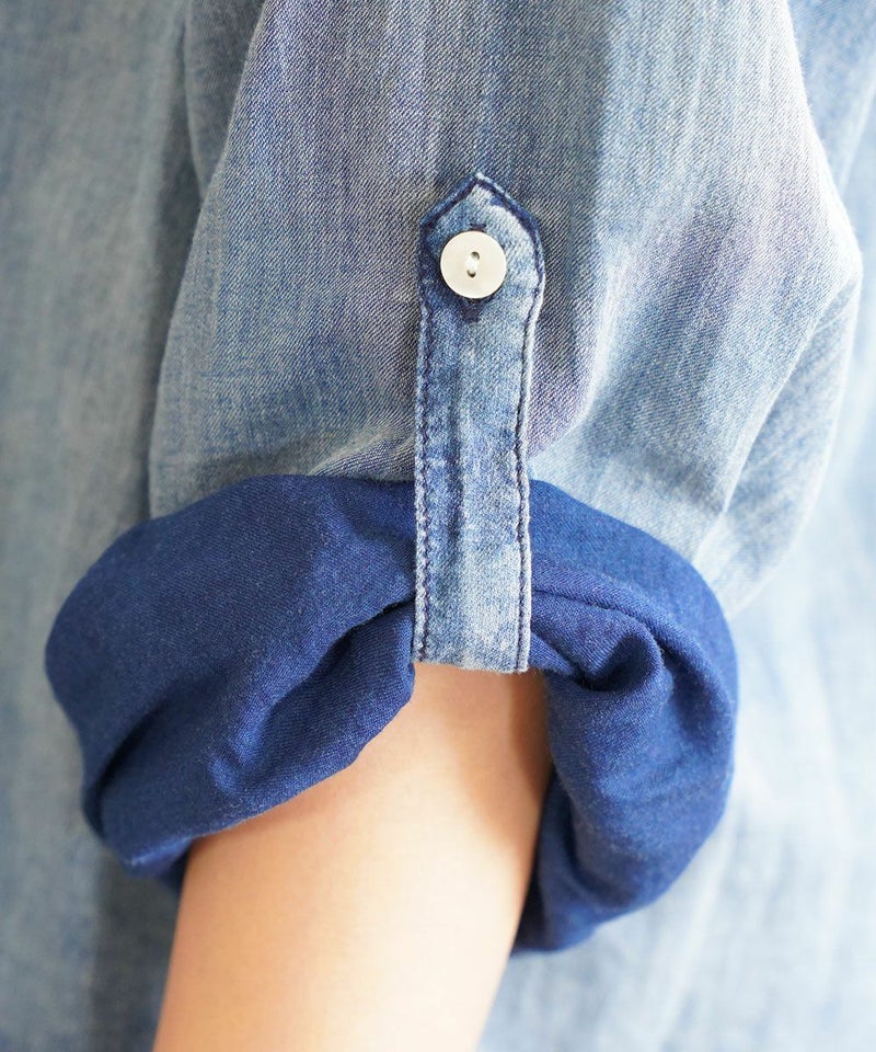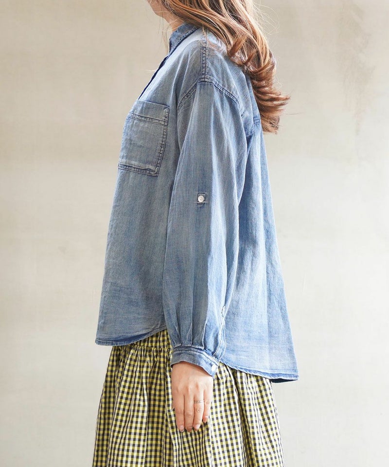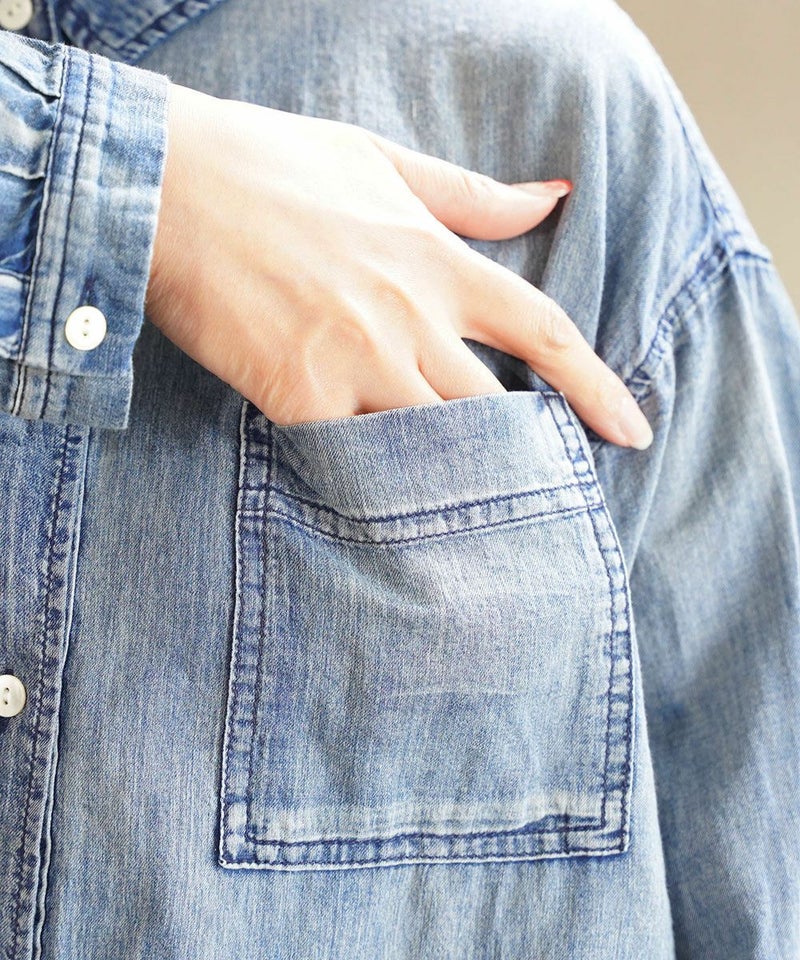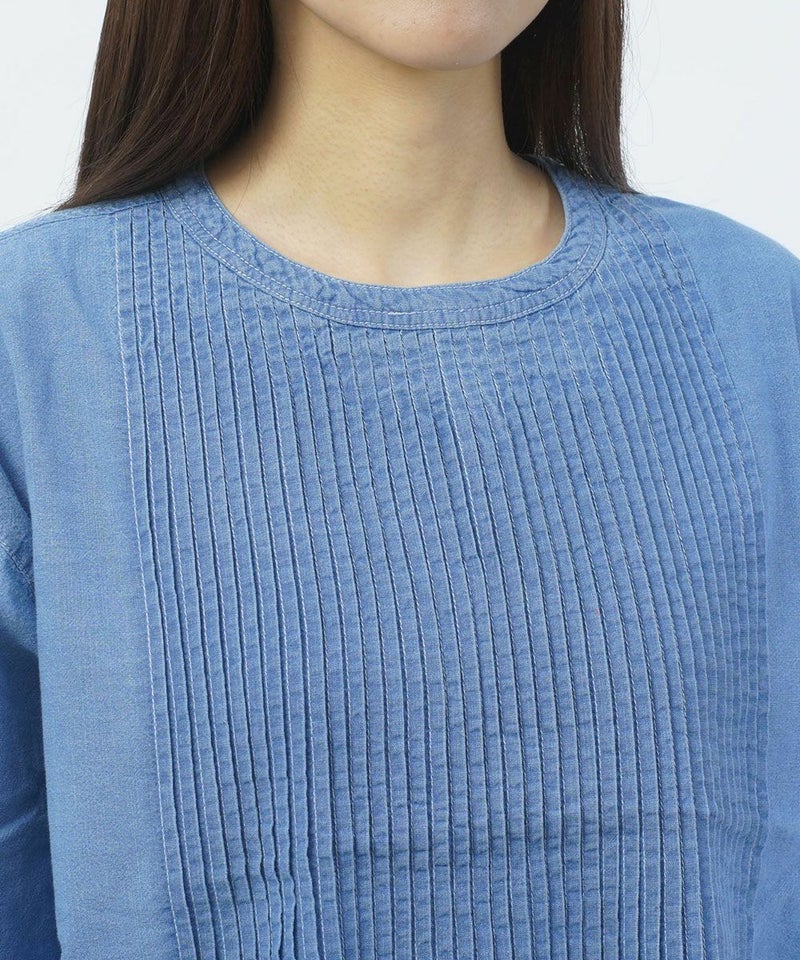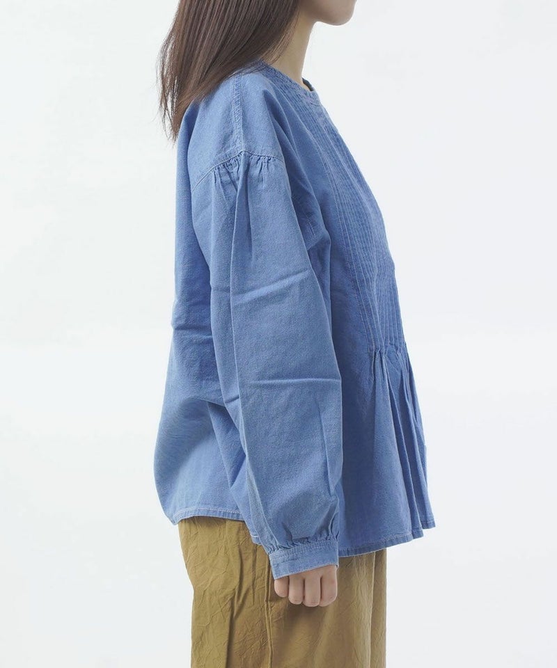 インディゴシャンブレーピンタックブルオーバー