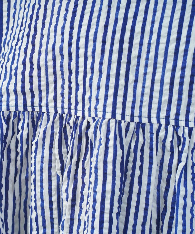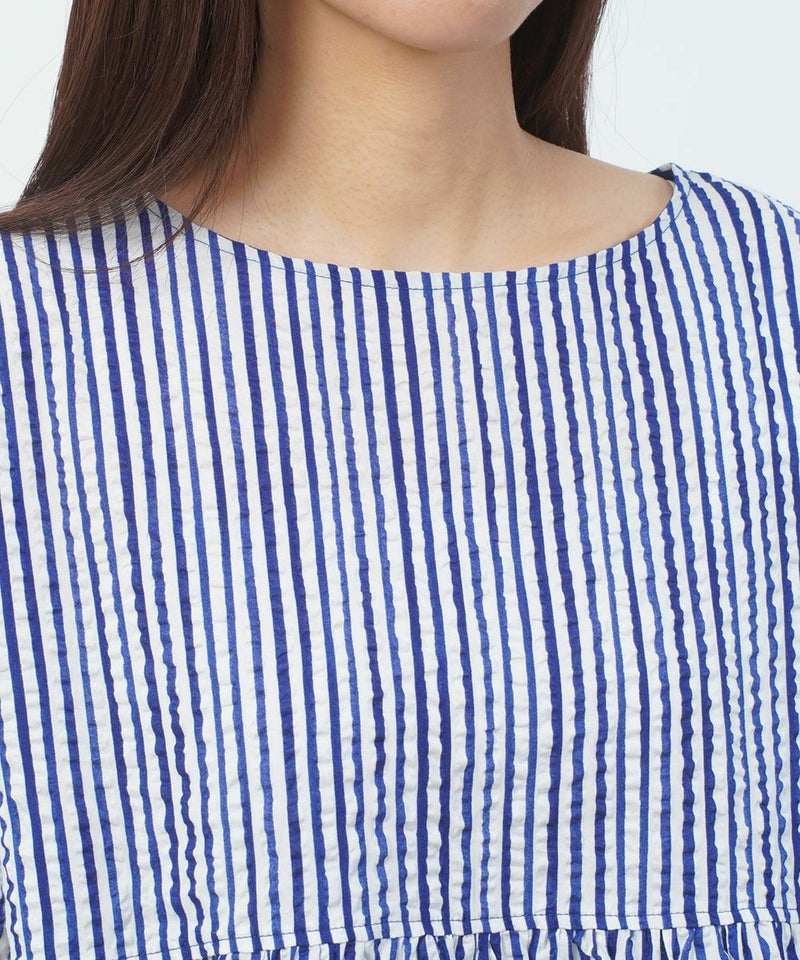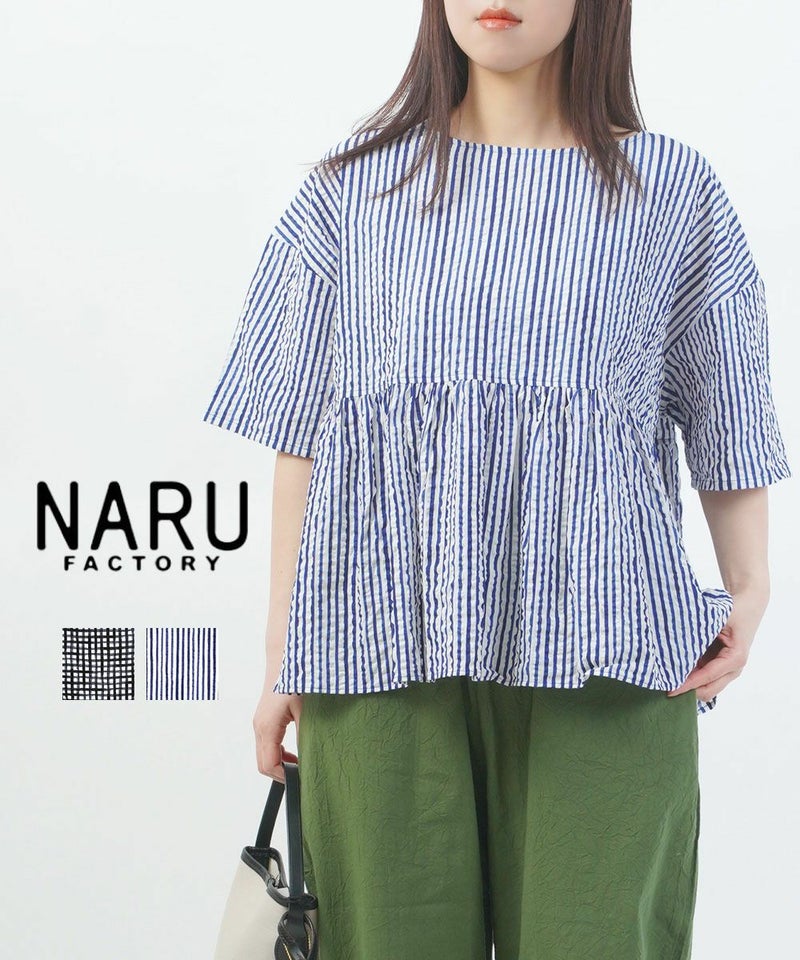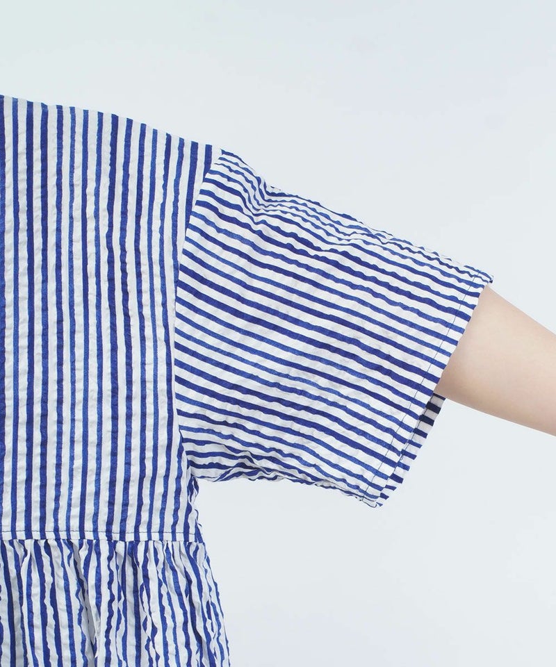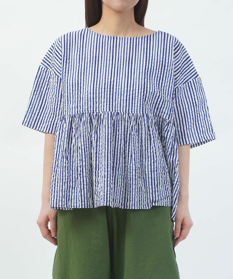 60ローンリップルチェック&ストライプ ギャザーチュニック