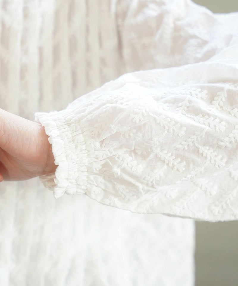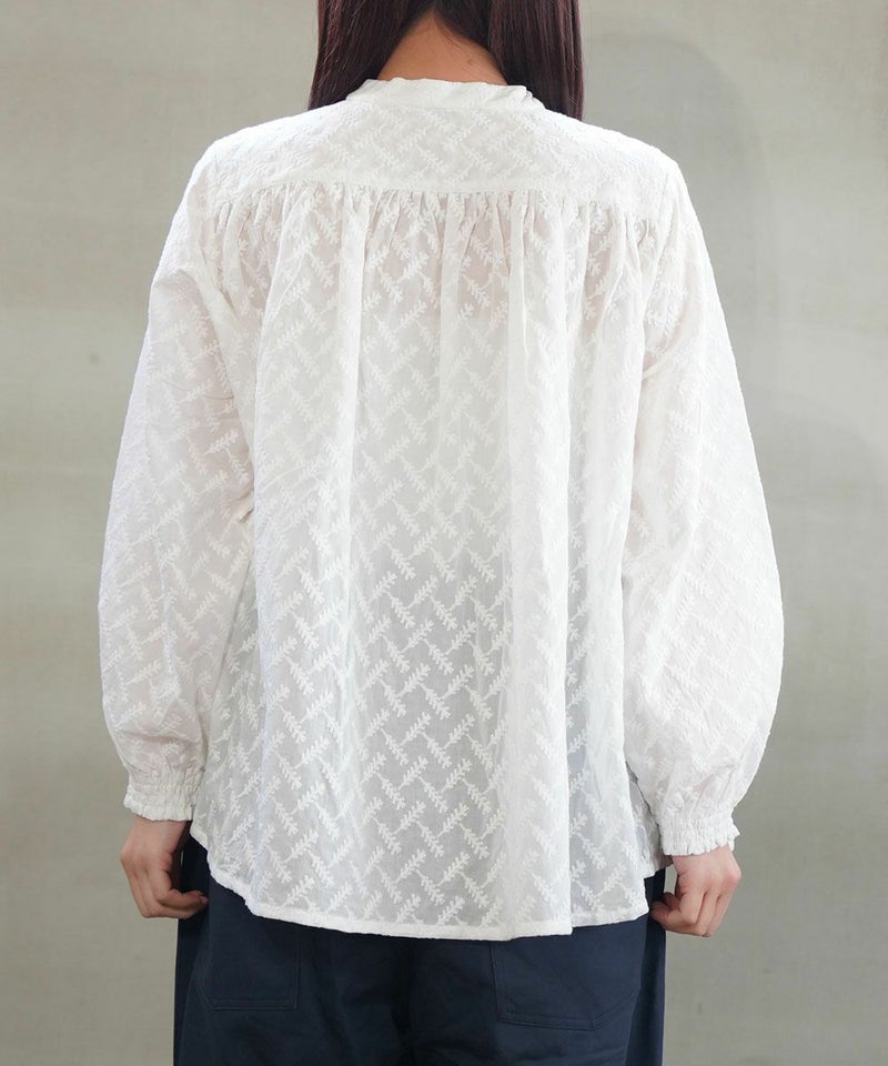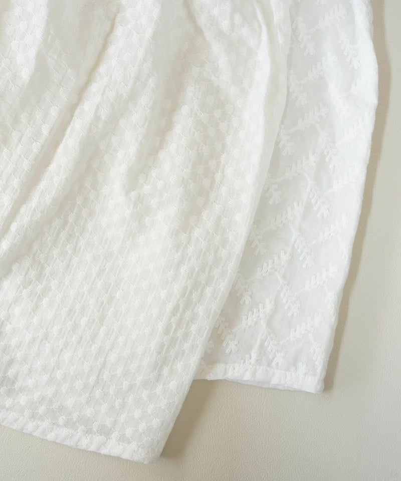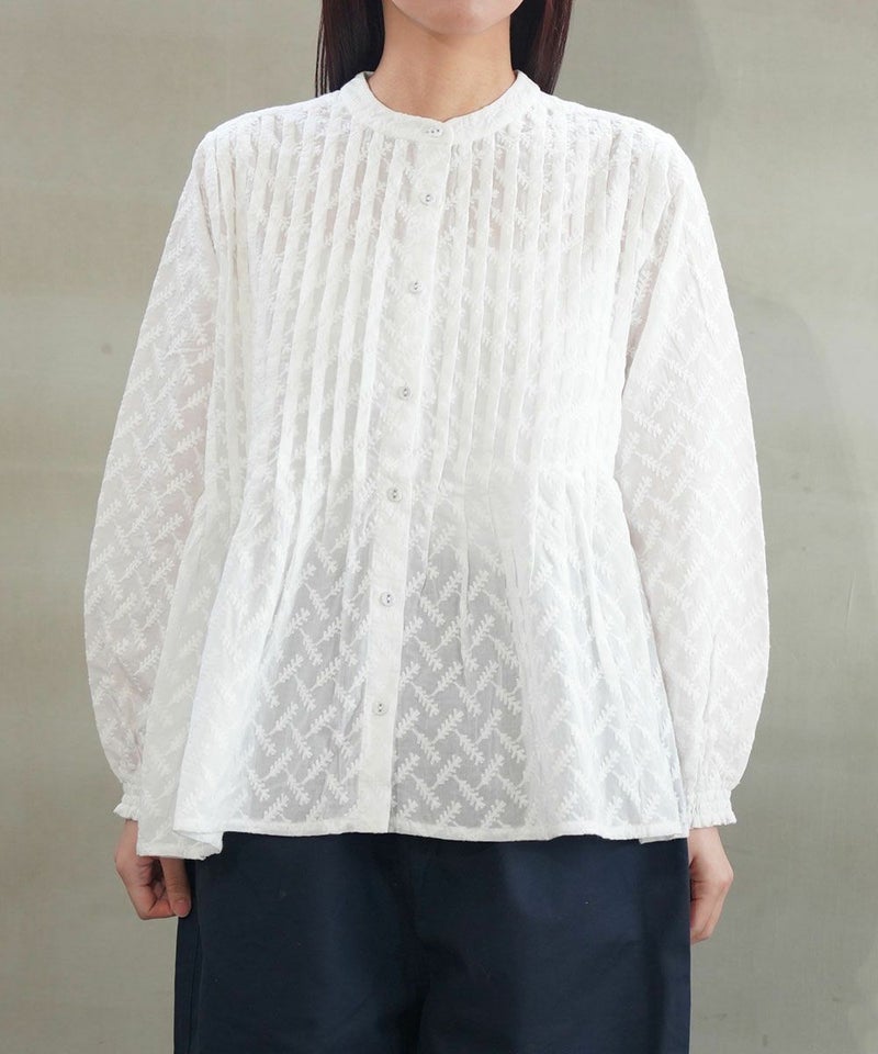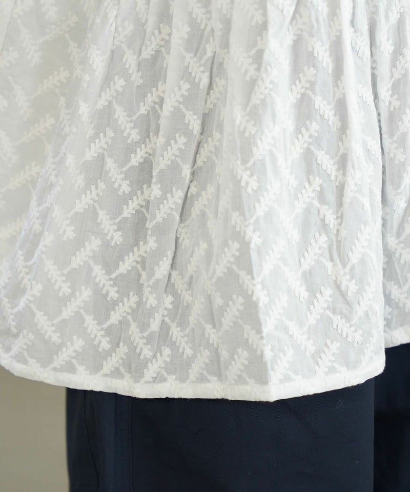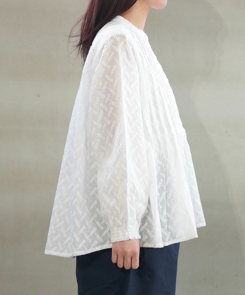 刺繍レースピンタックチュニック丈ブラウス