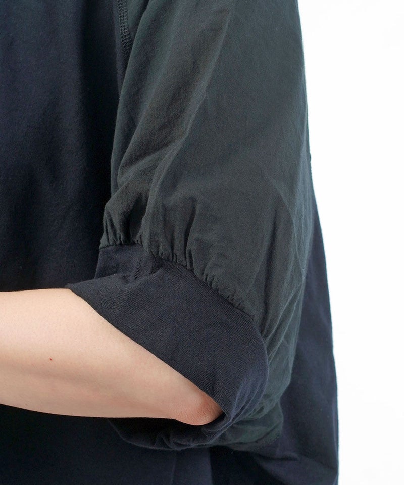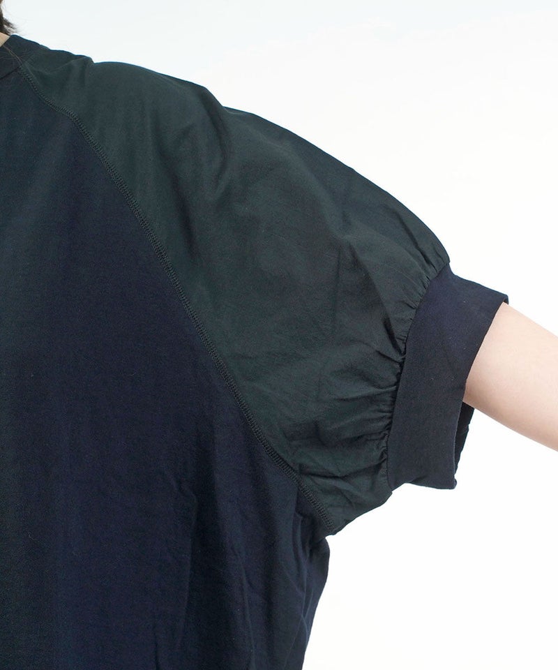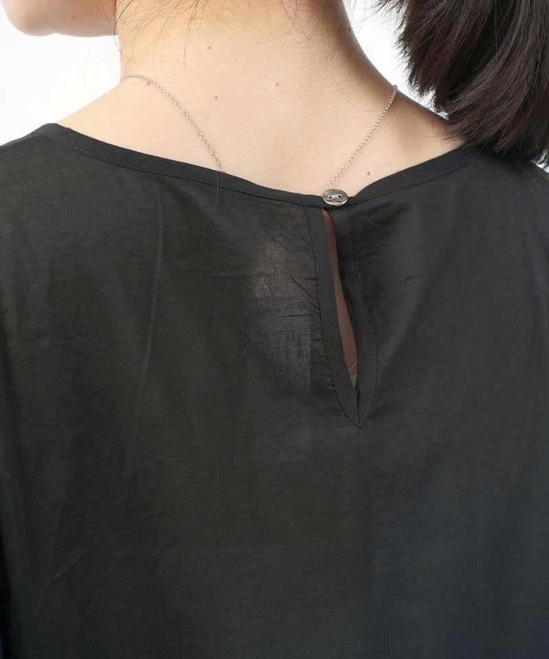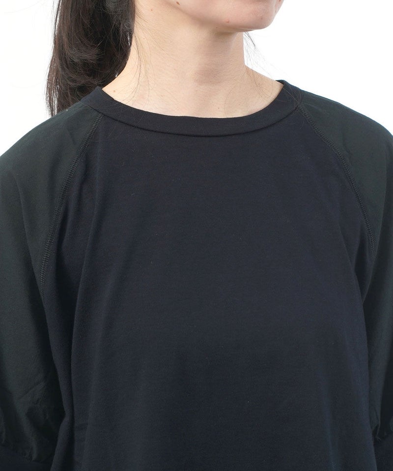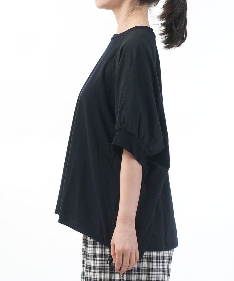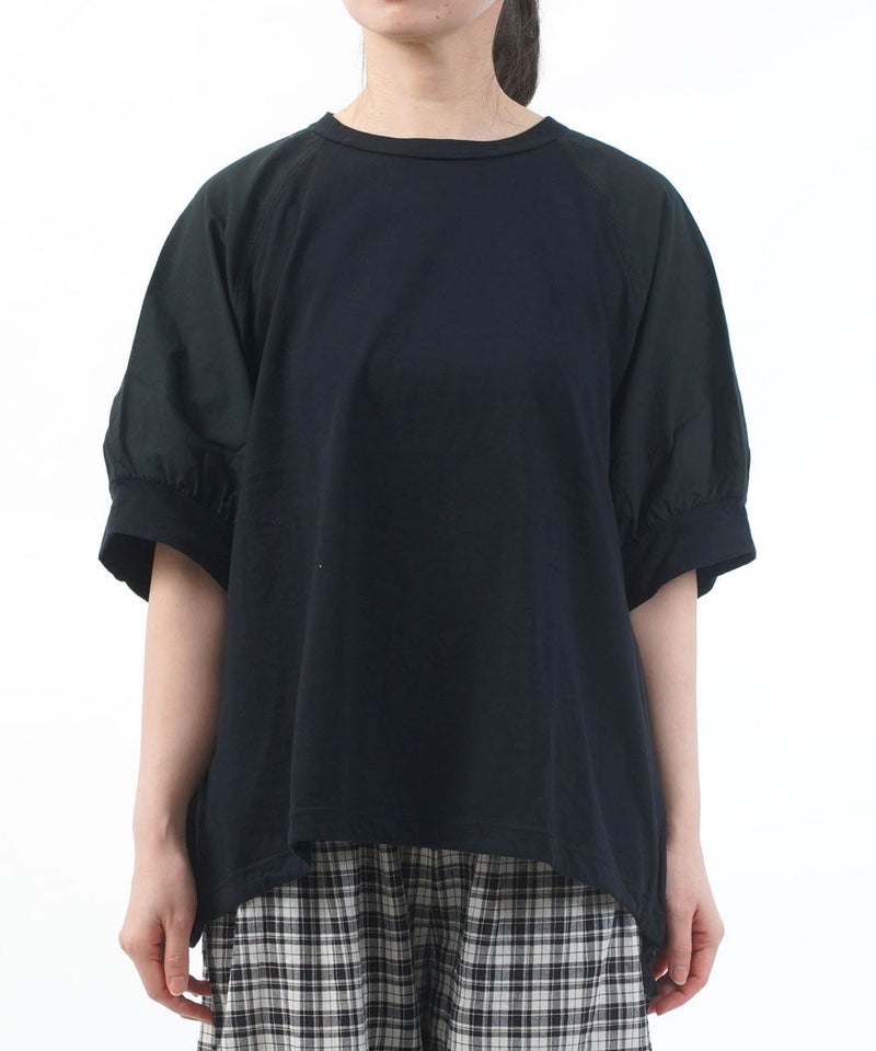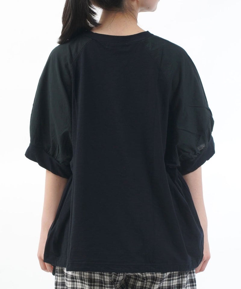 コットンレーヨンツイル×ローン シアー5分袖 フロントフリル Tシャツ