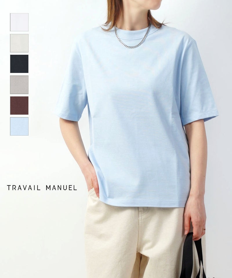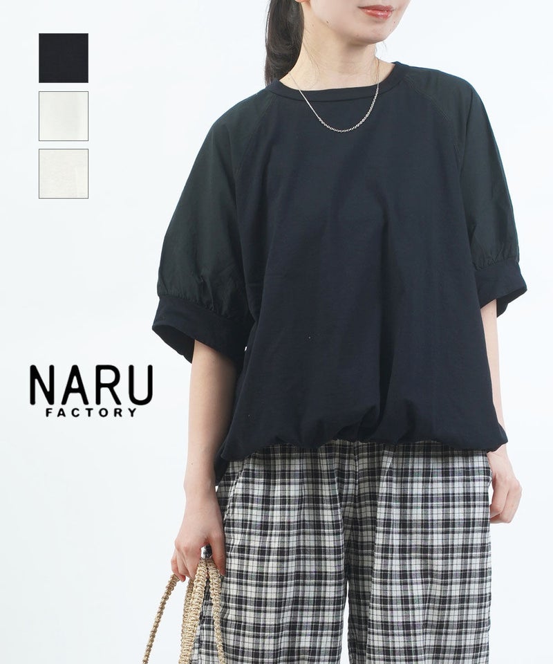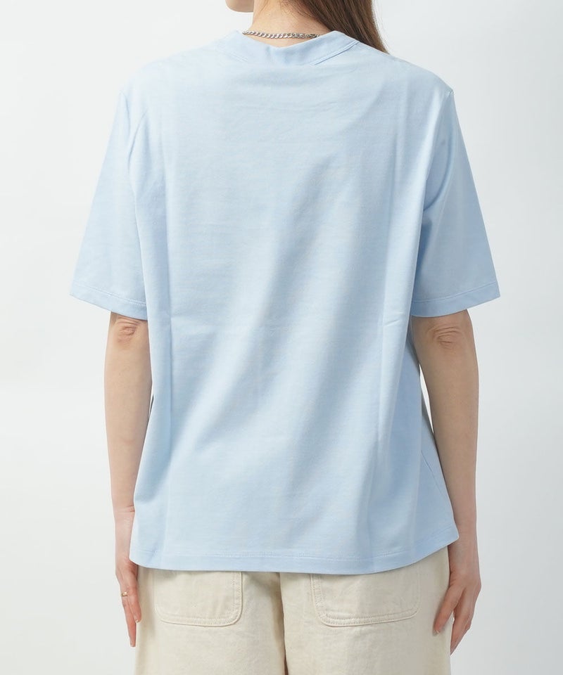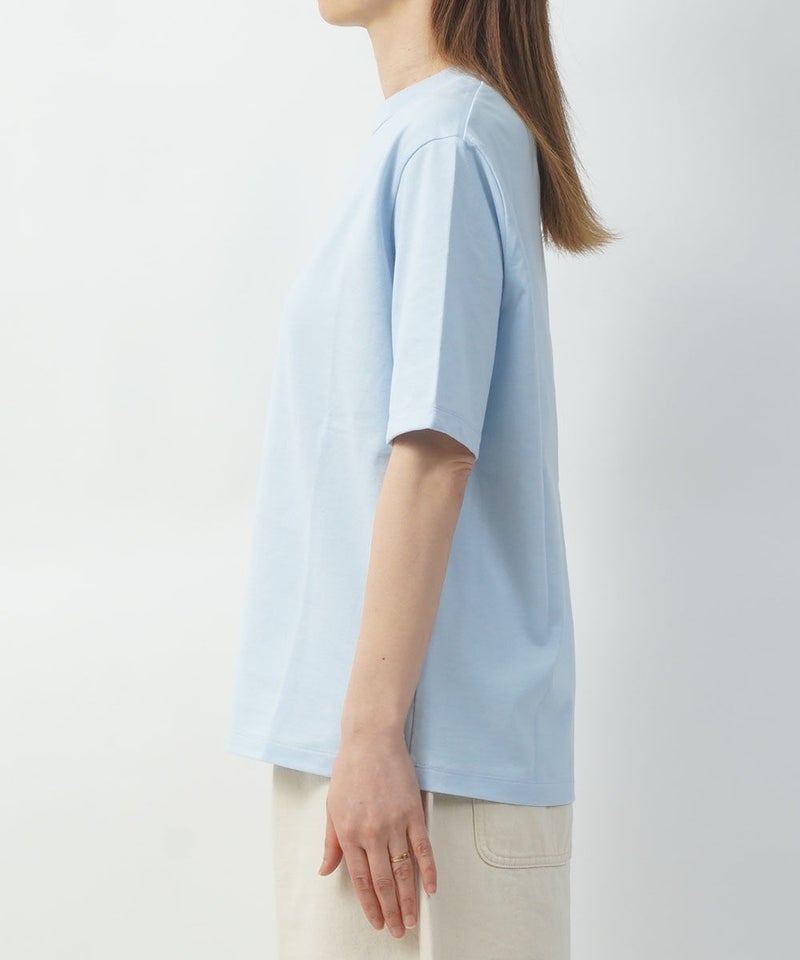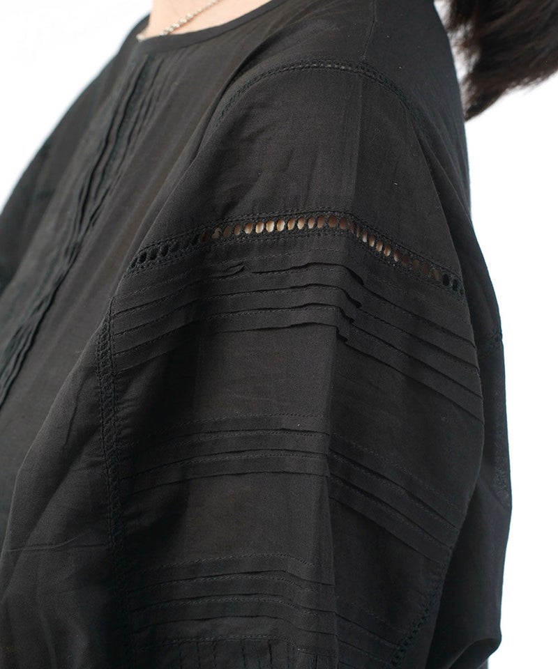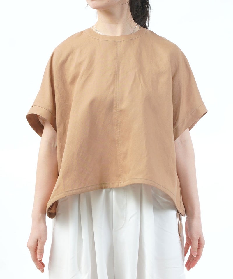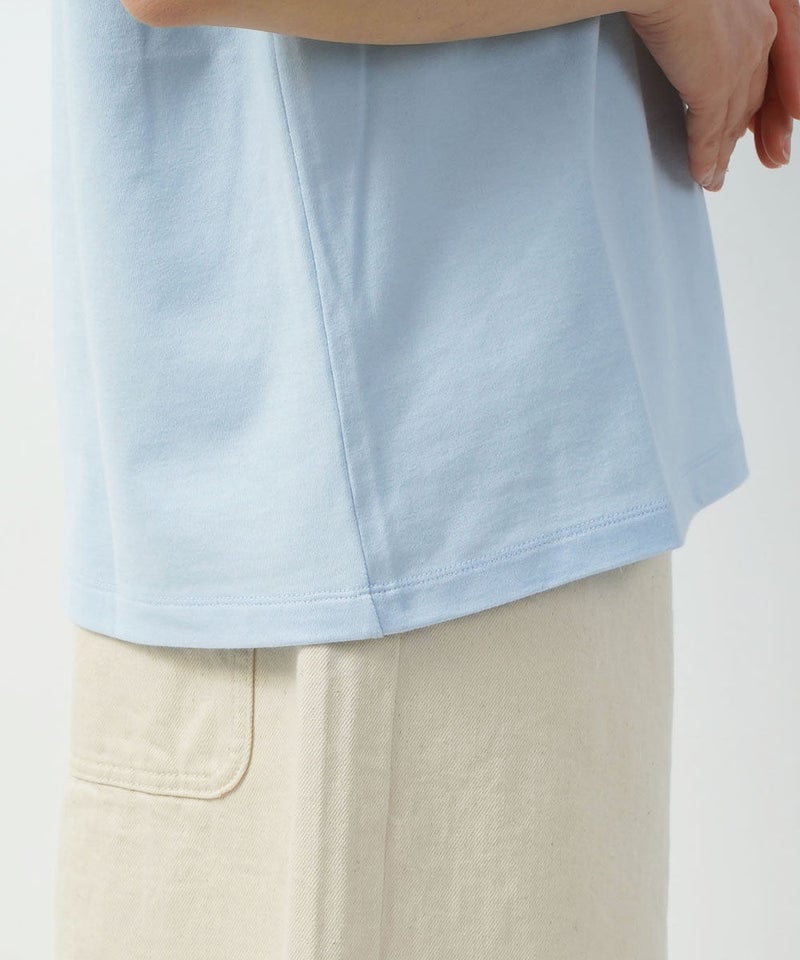 コットンレーヨンツイル×ローン シアー5分袖 フロントフリル Tシャツ