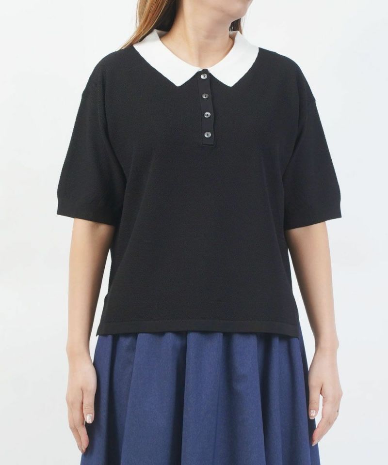 レーヨン混 鹿の子 襟付き ポロニット ワイドプルオーバー
