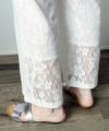 雰囲気のある花柄のクロシェ生地を使用した、大人のイージーパンツです。