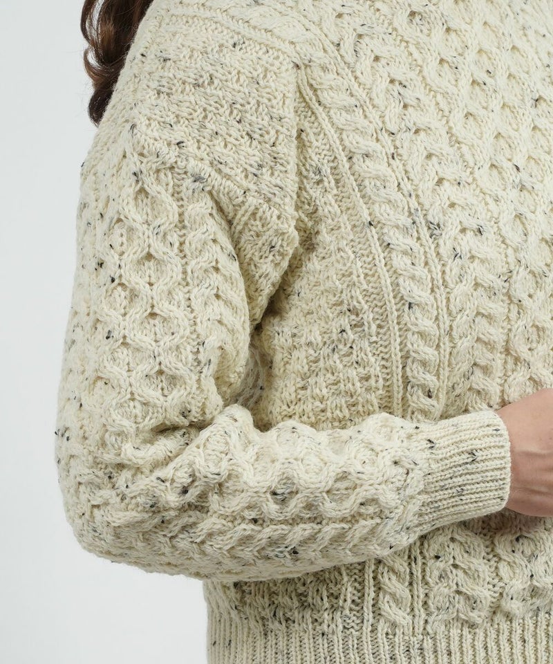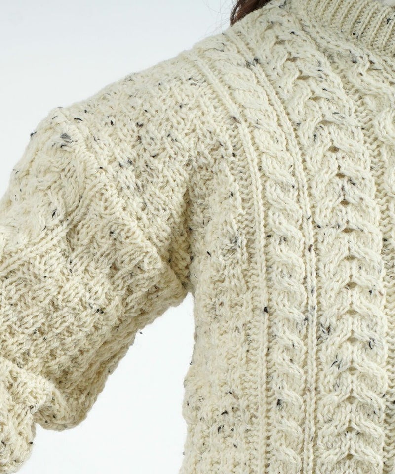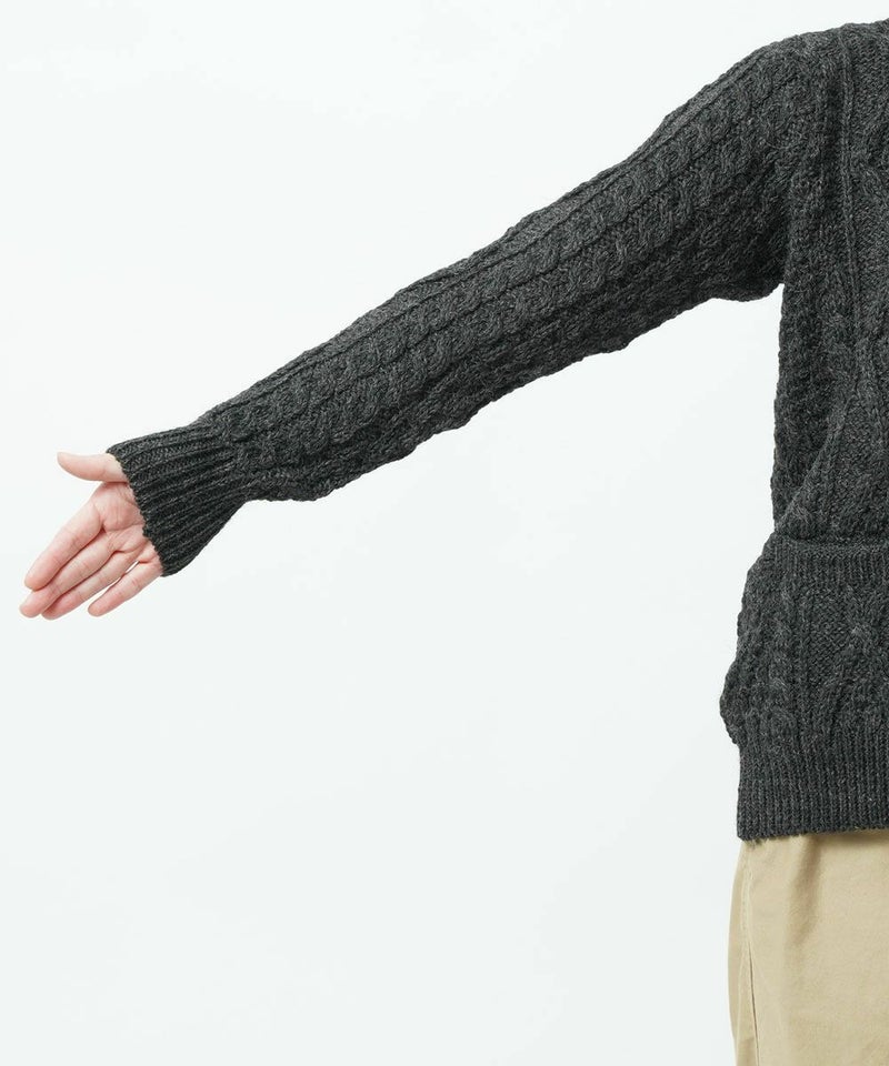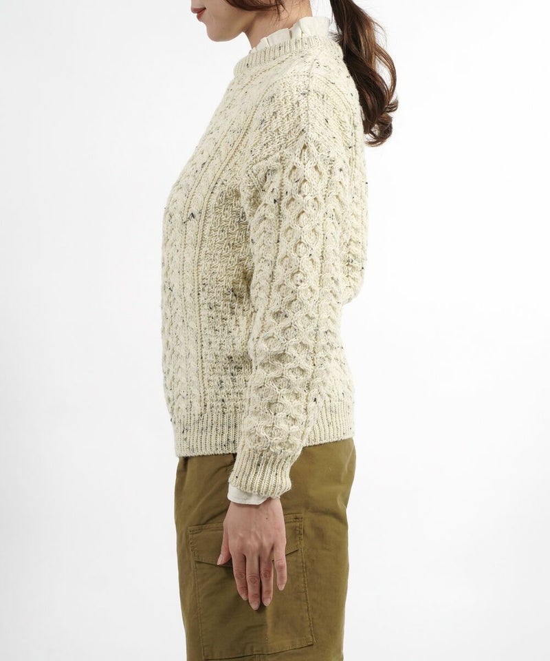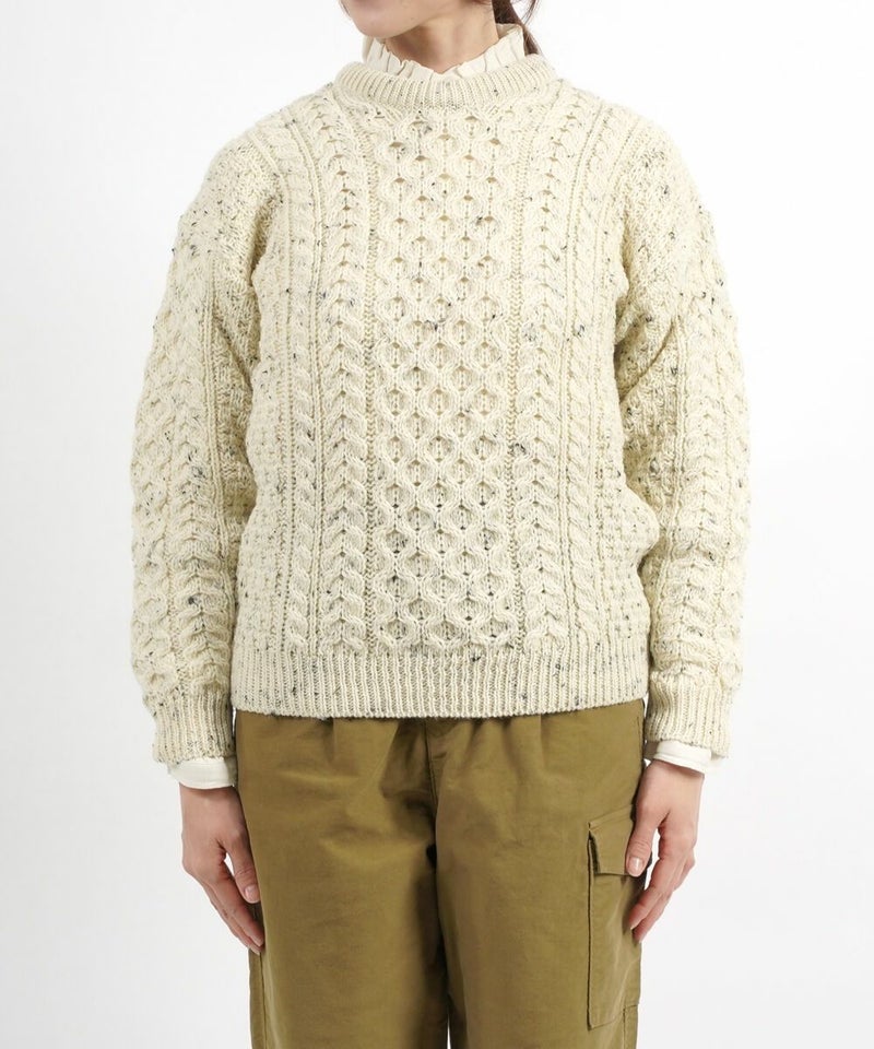 ピュアニューウール アラン編み クルーネック ニットプルオーバー セーター アランニット