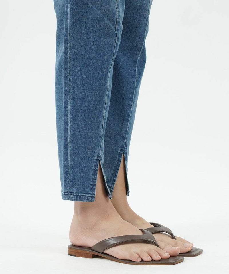 コットンストレッチ デニム パンツ スリットテーパードジーンズ