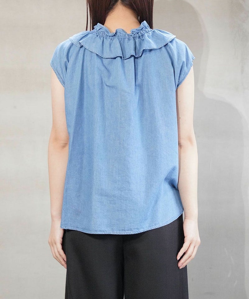 テンセルデニムノースリーブブラウス