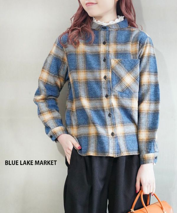 BLUE LAKE MARKET(ブルーレイクマーケット)撚杢ネルチェック ヘムラウンドチェックシャツ