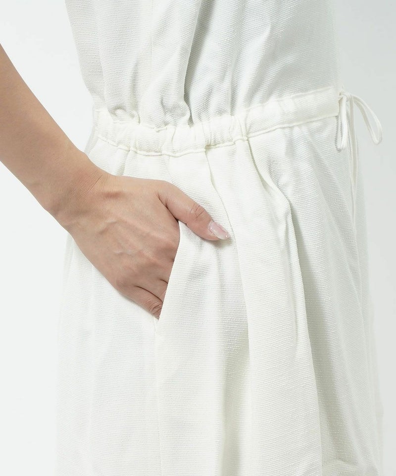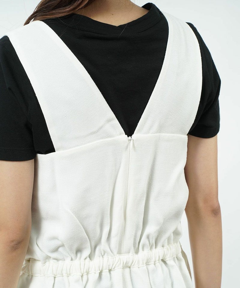 スラブ バックサテン ハーフ丈 ノースリーブ サロペット ハーフパンツ