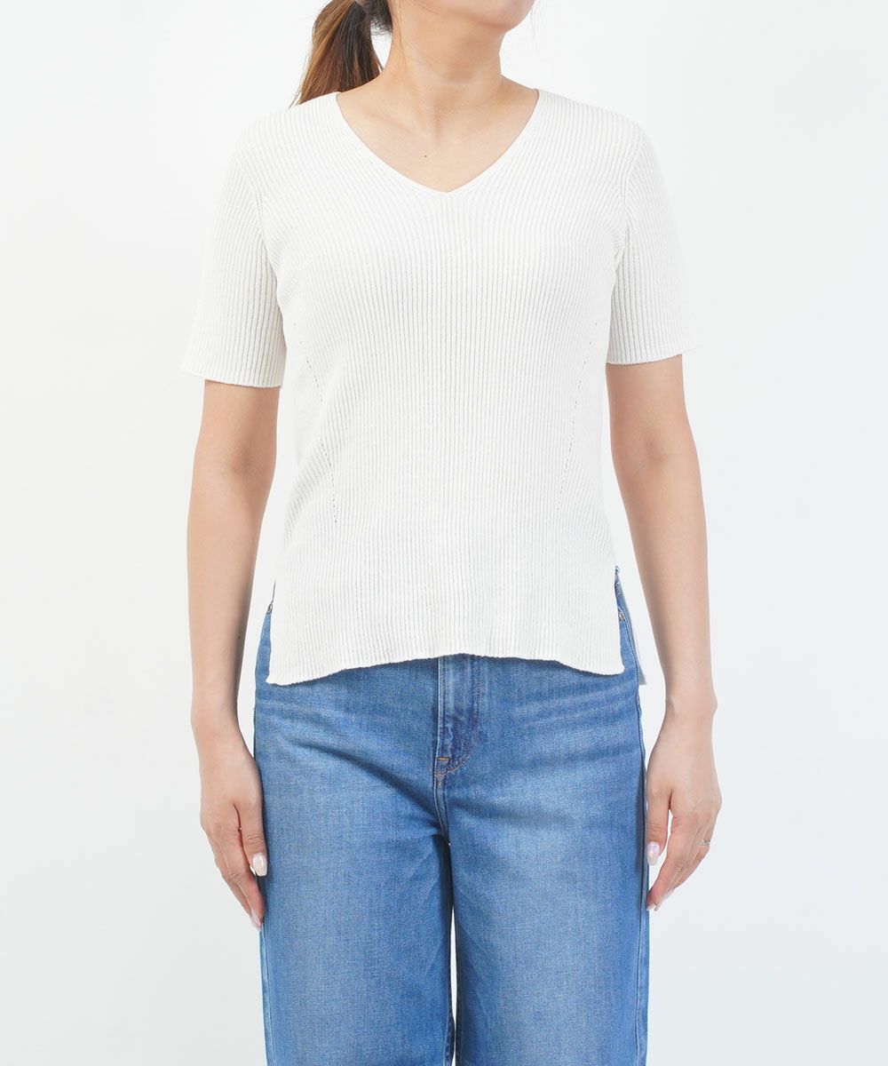 Vネック リブプルオーバーニット