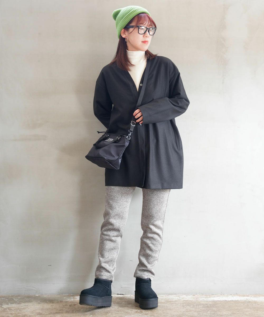 秋冬定番素材である、表面がニットのように見えるニットフリースを使用し、