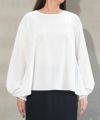 ブラウスはハリと光沢を兼ね備えた仕上りで、キレイめ感を意識したものに。