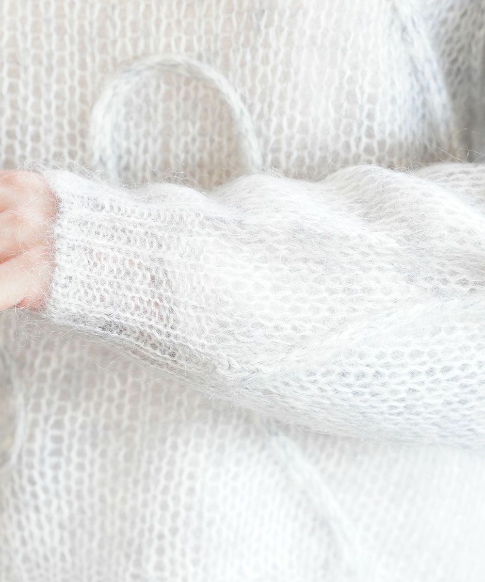 少しシアーなモヘアニットがトレンド感のある1枚です。