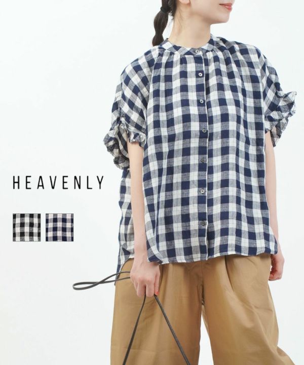 HEAVENLYの「リネンチェック フリルスリーブシャツ」。