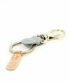 ロゴマークの型押しやレザータグがポイントになったシンプルなキーリング。