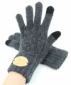 スマートフォンタッチ レザーロゴパッチ付き ニットグローブ 手袋 スマホ対応