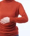 サイドに切り替えが入ったギャザーデザインが表情のあるタートルニット。