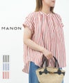 MANON(マノン)フリルスリーブ リネンミックスストライプ アミカルシャツ