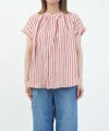フリルスリーブ リネンミックスストライプ アミカルシャツ