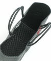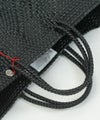 プラスチックのコードを丁寧に編み込んだ、独特の模様編みが目を引くアイテム。