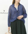 PUPULA(ププラ)プリンテッドパワーネットチュール 袖ギャザー ワイドシャツ