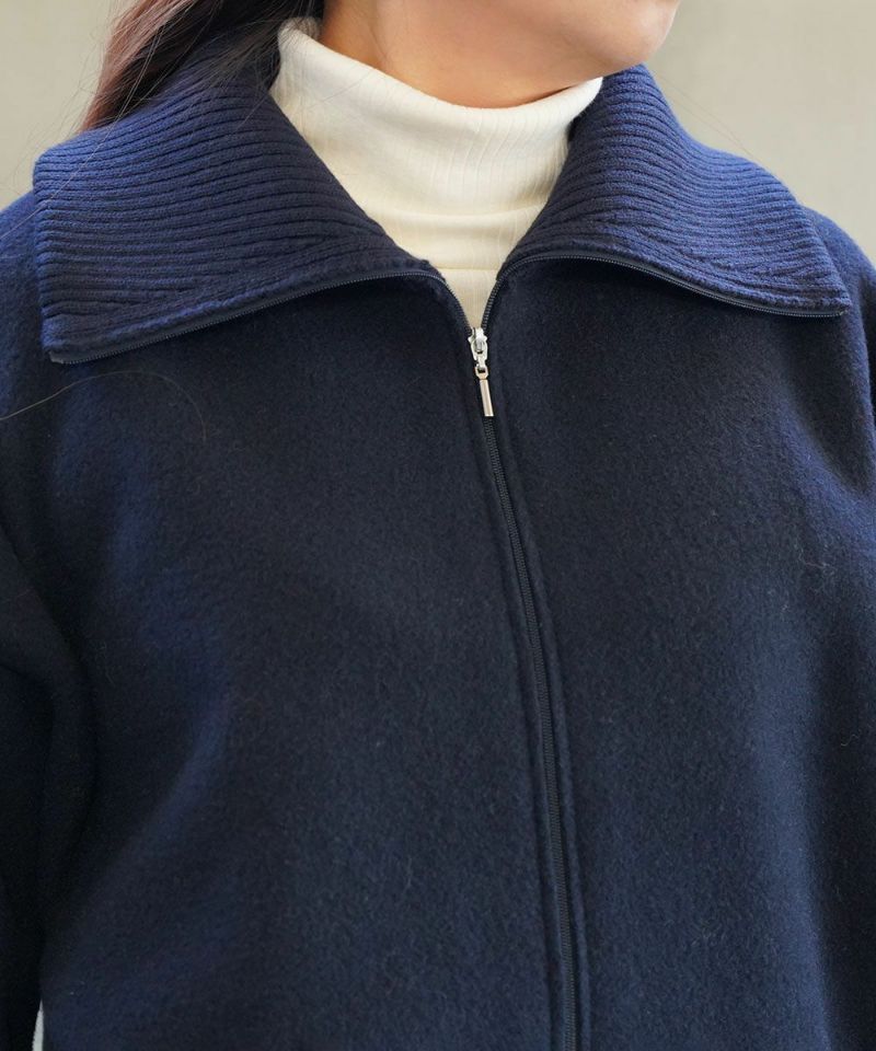 ウールフリース×リブ スタンドカラー ジップアップジャケット