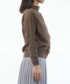 モックネック仕立てのネック周りを活かして、ボタンを留めて