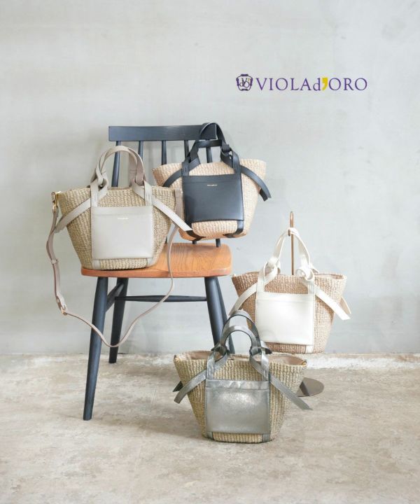 4. VIOLAd'ORO(ヴィオラドーロ)MIRO アバカ製 2WAY レザーポケットトート Mサイズ