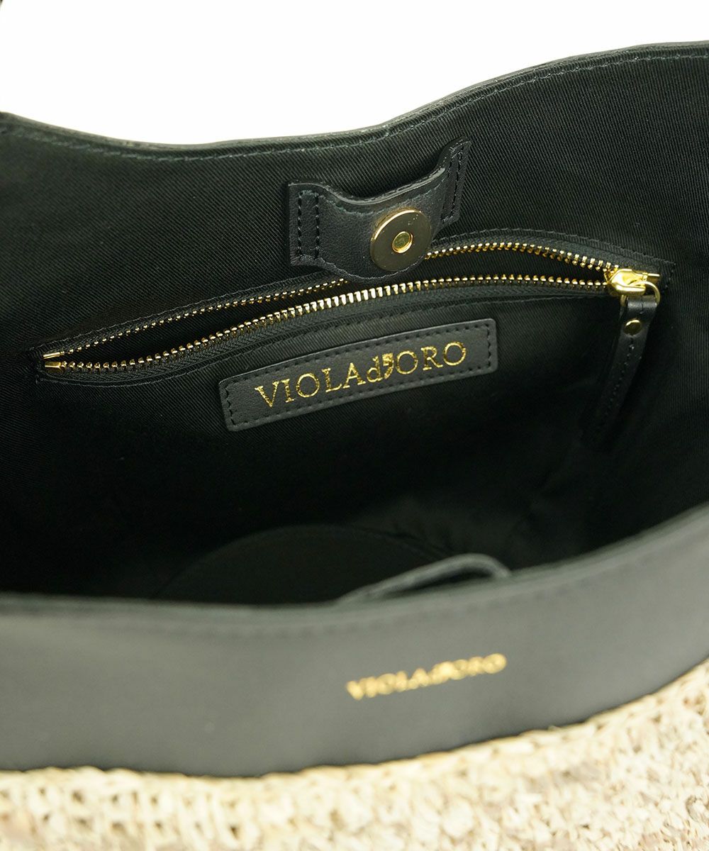 VIOLAd'ORO(ヴィオラドーロ)の「ラフィア レザーコンビトート」。
