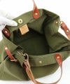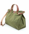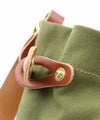 ハンドルやストラップ部分を配色のレザー素材で仕上げ、