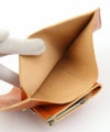 がま口の小銭入れが特徴的な二つ折り財布。