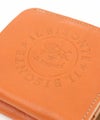 フレッシュなインパクトとなるサークルロゴの型押しがあしらわれた2つ折りウォレット。