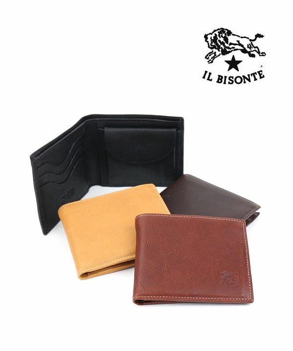 イルビゾンテのロゴを角にさりげなく型押しした、スタイリッシュなデザイン二つ折り財布。