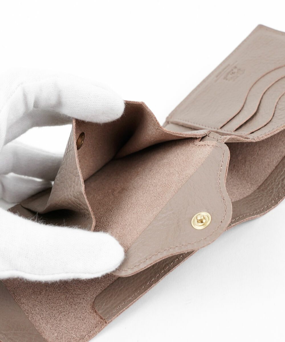 柔らかく手に馴染むレザーで仕立てた新型の折り財布。