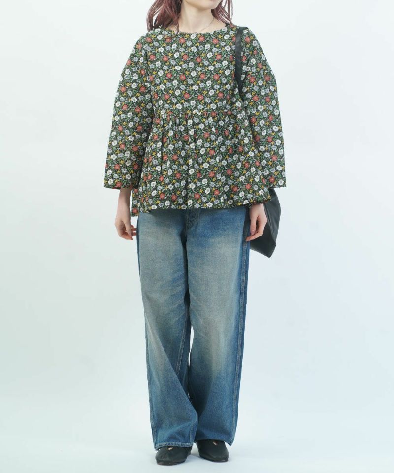 80ローン塩縮ボタニカルフラワーギャザーチュニック