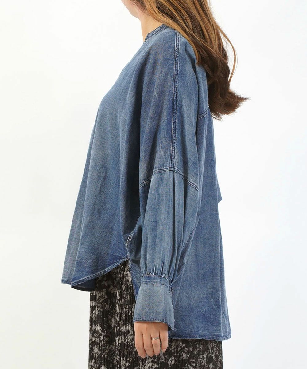 コットンレーヨンツイル シャツ襟 スキッパー ドルマンプルオーバー
