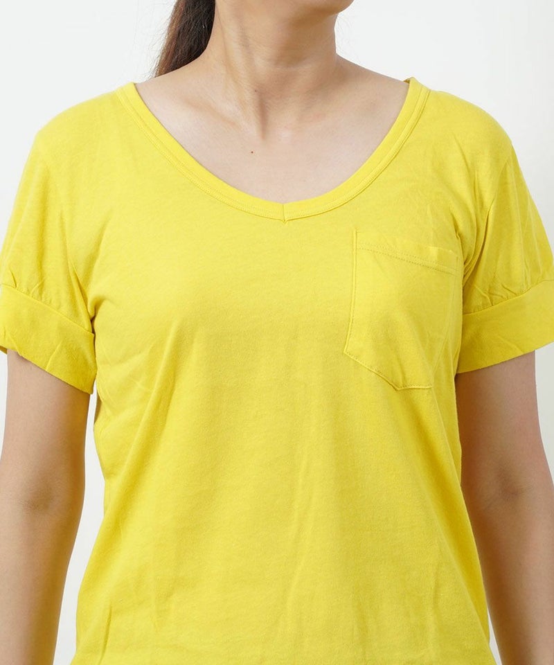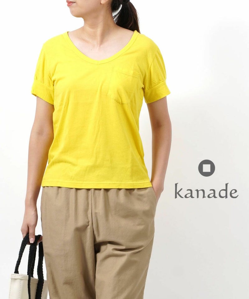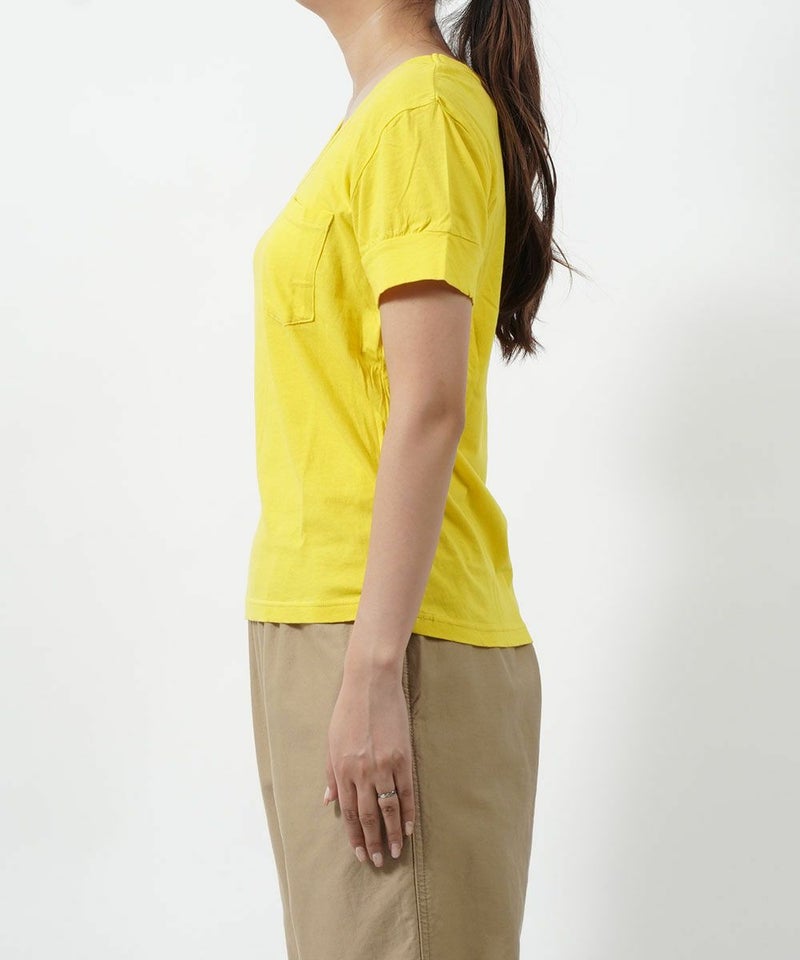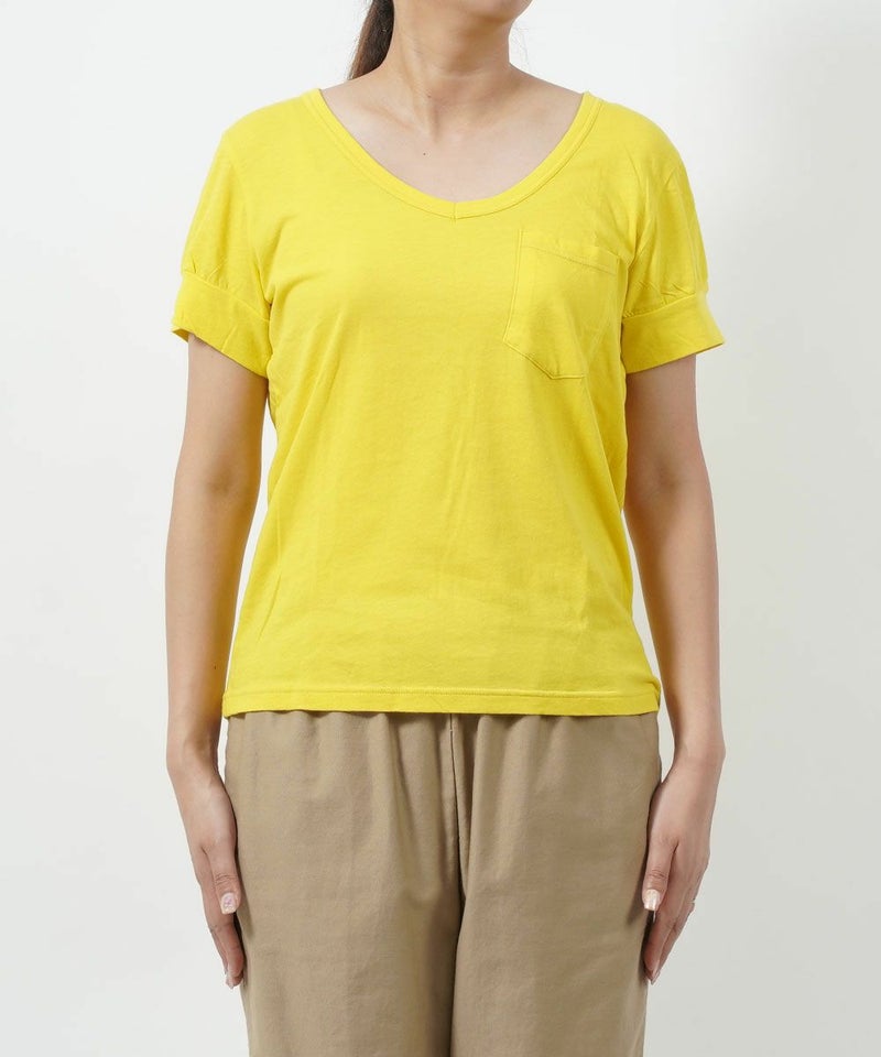 コットン 半袖 Vネック ポケットTシャツ