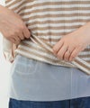 前身頃はサラリと通気性のあるボーダー生地、後ろ身頃は滑らかな伸縮性のある生地。