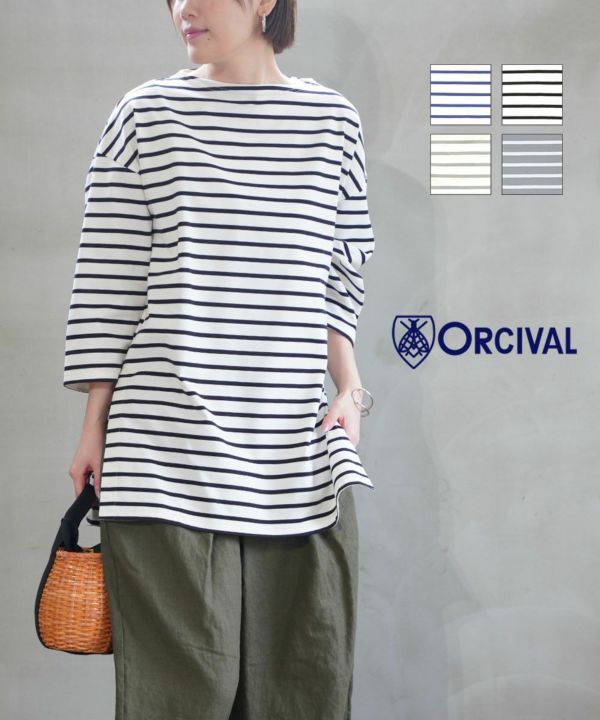 5. ORCIVAL(オーチバル・オーシバル)コットン マーセライジング ワイド ボートネックプルオーバー ボーダー