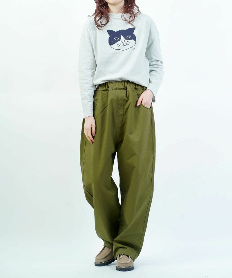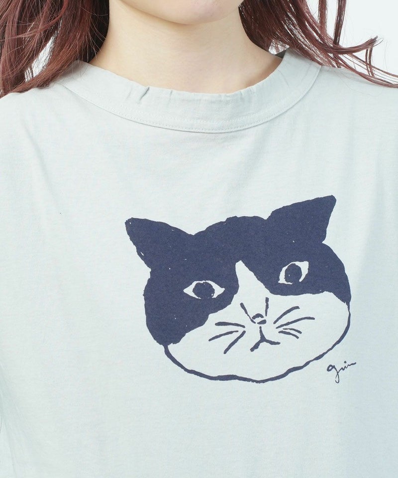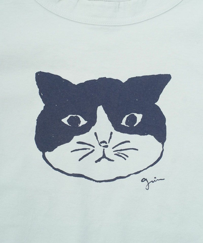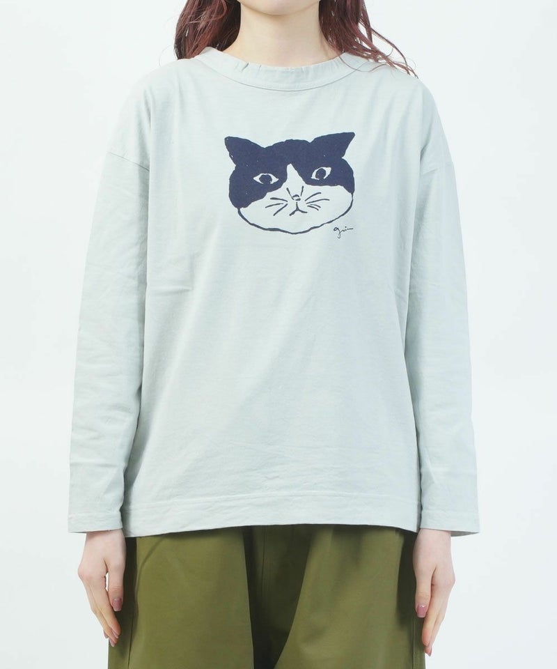 オーガニックエーゲ海天竺モノトーン猫長袖プリントT