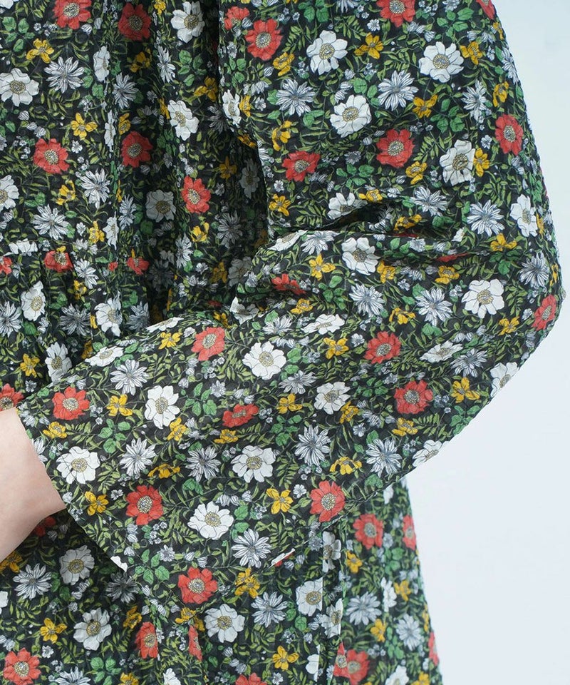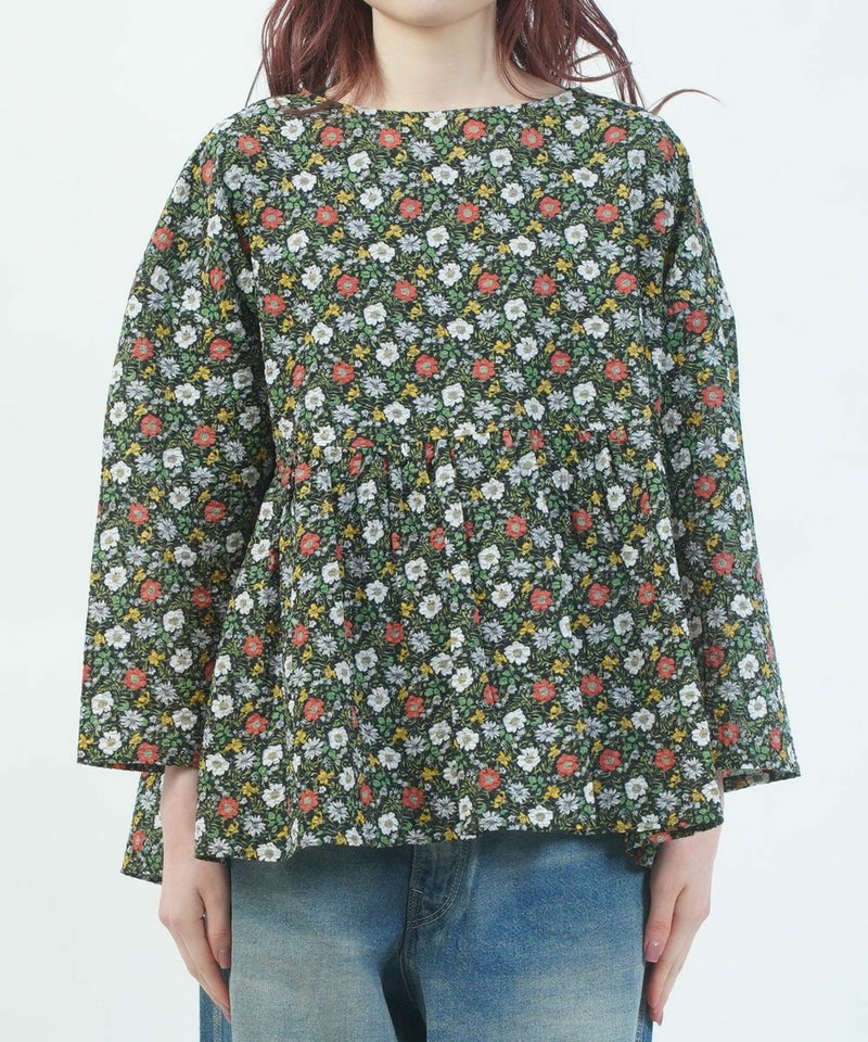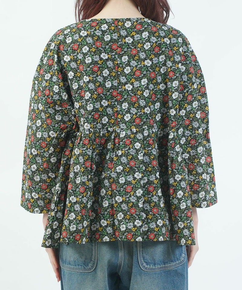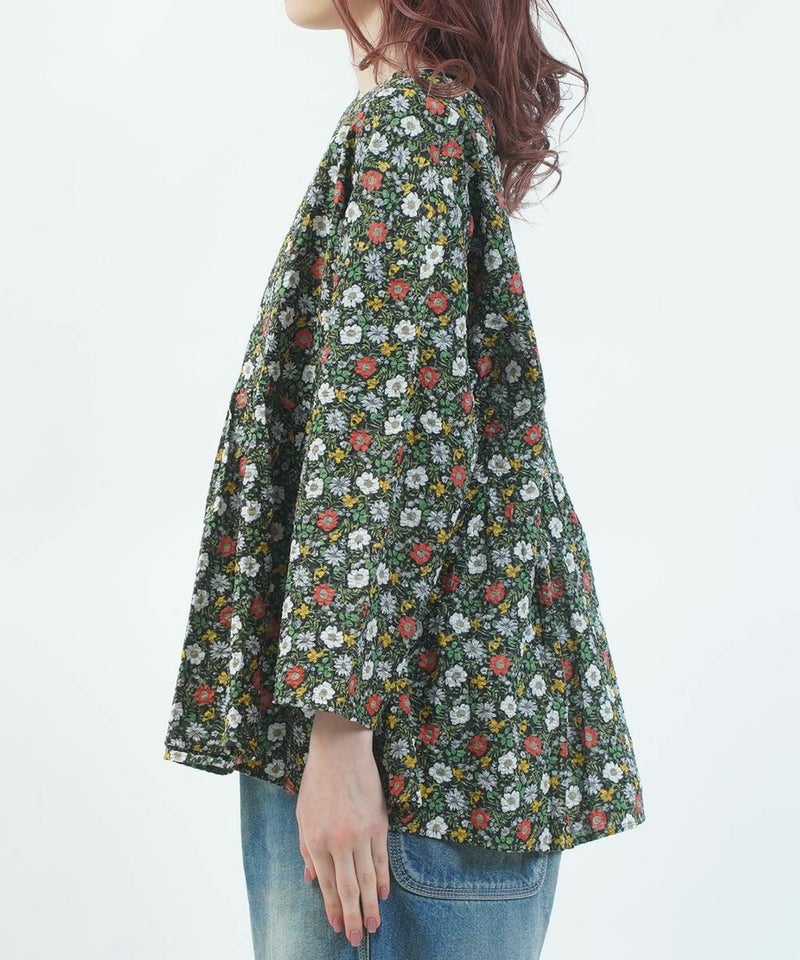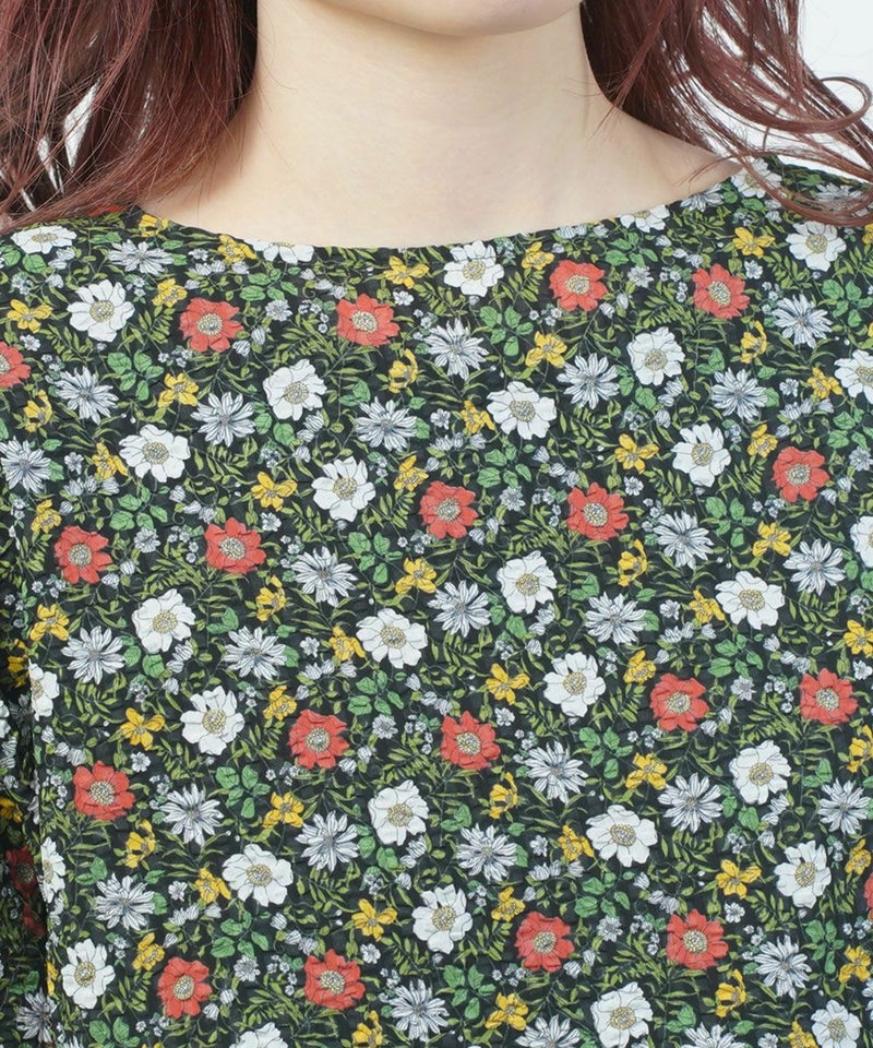 80ローン塩縮ボタニカルフラワーギャザーチュニック
