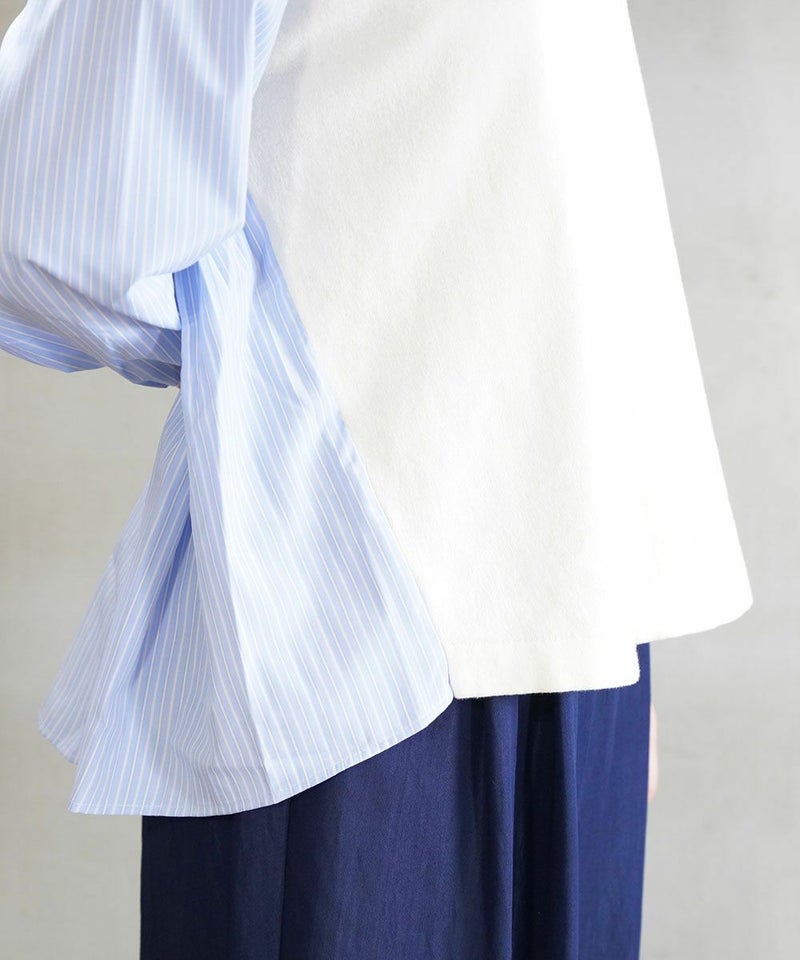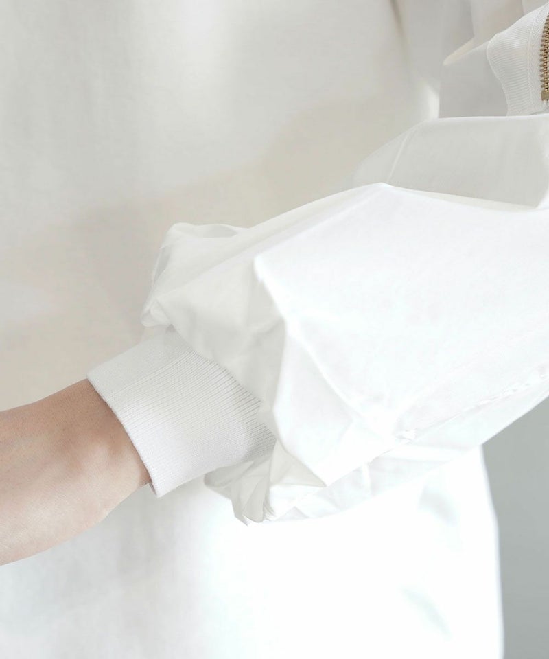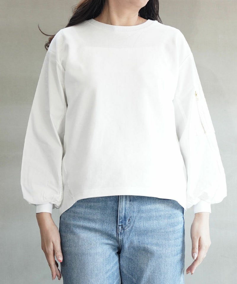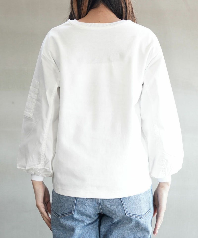 ダンボール+布帛 ポケット付きパフスリーブプルオーバー