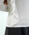 前身頃から右脇にかけてあしらわれたアシンメトリーなフリルデザインがポイントになって、