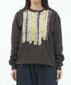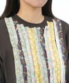 幾通りもの生地をまるでフリルのようにあしらったカットソーには、
