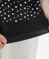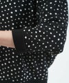 甘くなりがちなドット柄も全体をブラックパイピングで縁取ることで、