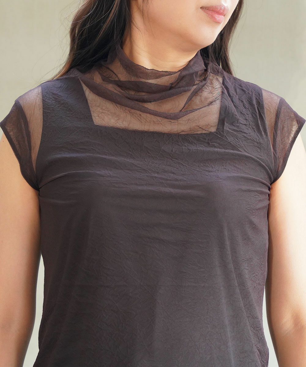 コットンシルクミラノリブ×ネット シアー シャツ襟 プルオーバー
