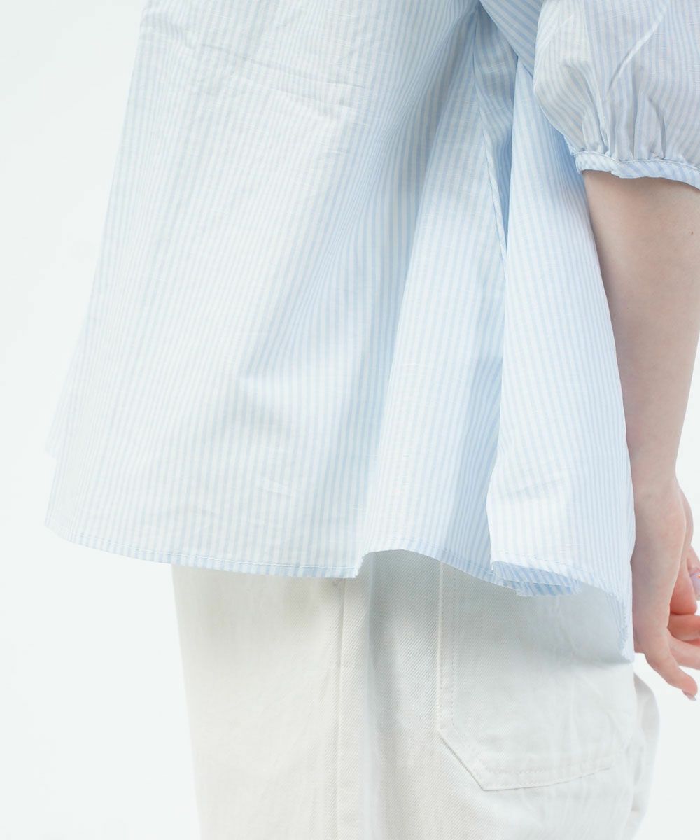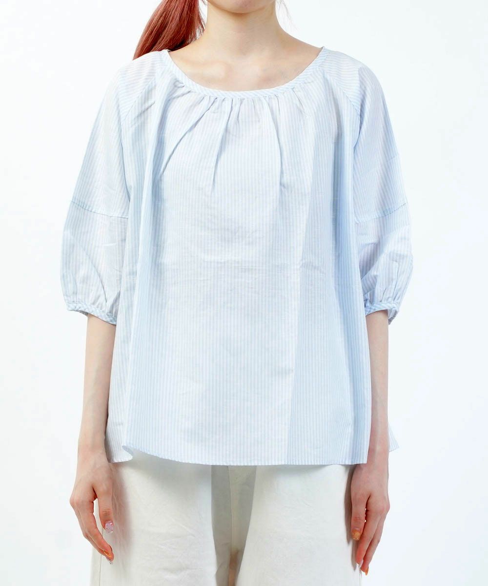 コットンリネン交織ストライプギャザーシャツ