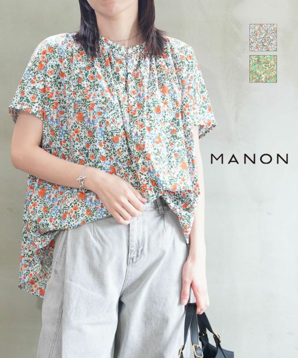 MANON(マノン)の「フラワー フレンチスリーブ ビッグアミカルシャツ」。
