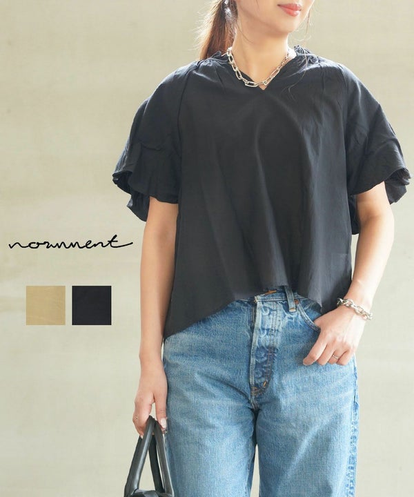 normment(ノーメント)の「ギャザーフレンチスリーブブラウス」。