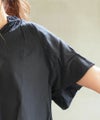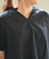 ネック周りに施したギャザー使い、